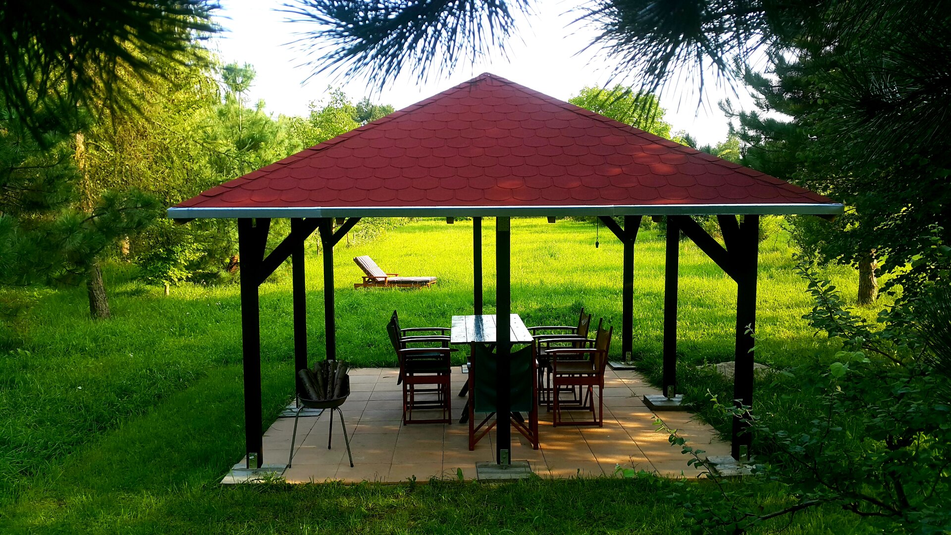 - altanka z grillem, położoną w ogrodzie z widokiem na łąkę i możliwośią zorganizowania ogniska
