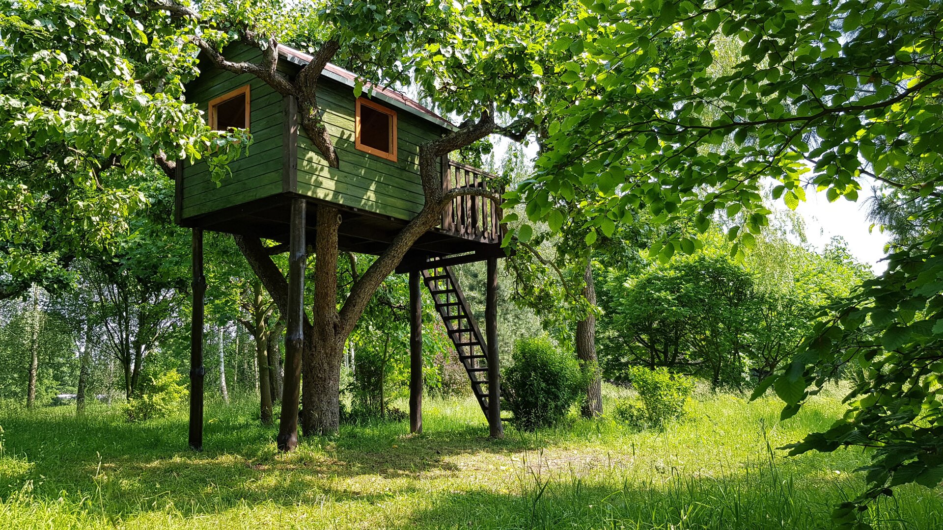 - dziecięcy domek na drzewie z możliwością spania w ciepłe noce